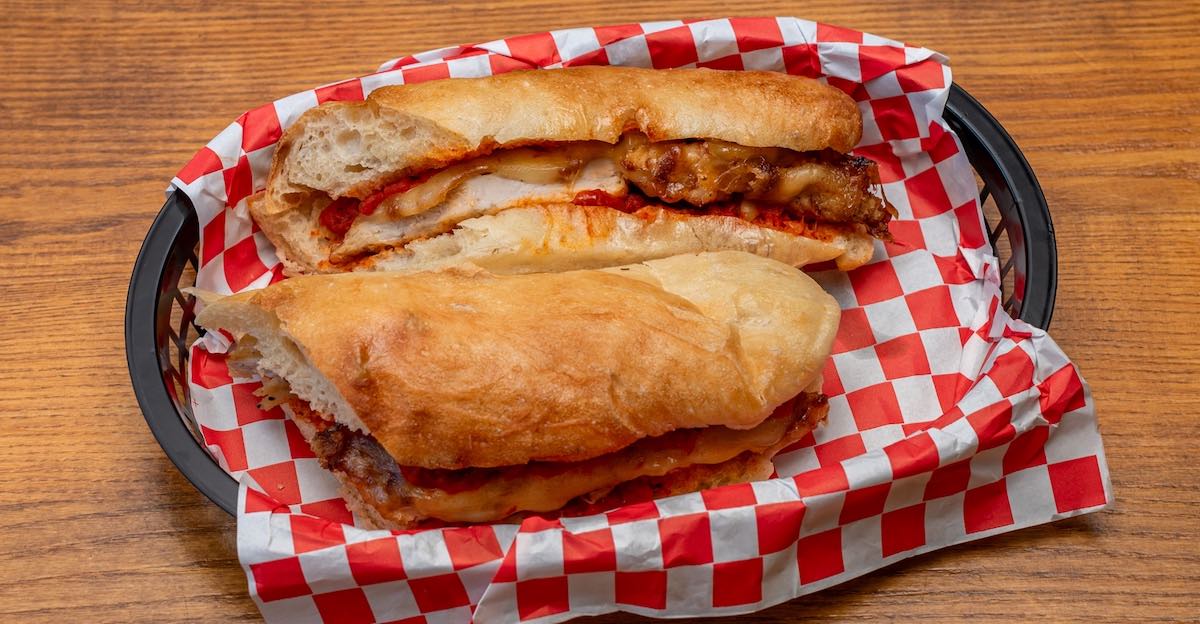 Our Chicken Parm Sub is stuffed with parmesan breaded chicken cutlet covered with melted mozzarella and topped with a savoury tomato sauce.