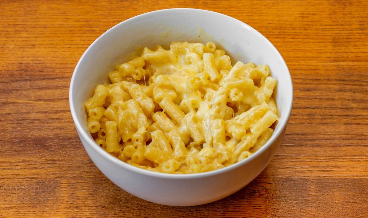 Macaroni with a creamy cheddar cheese sauce.